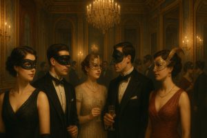 Mais dans les couloirs boisés, derrière les masques de velours et les sourires feutrés, se glissent des murmures. Les enjeux dépassent la simple noce : luttes d’influence, secrets de famille, mystères, affaires d’État ou de mœurs… Chacun vient avec ses intérêts, ses silences et ses vérités prêtes à être marchandées.